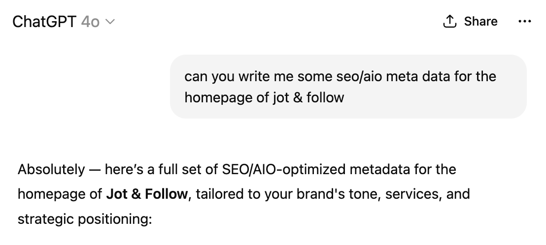 Ask AI to help you write metadata that works for AI. It’s meta, but it’s effective. AI knows what AI wants to read.